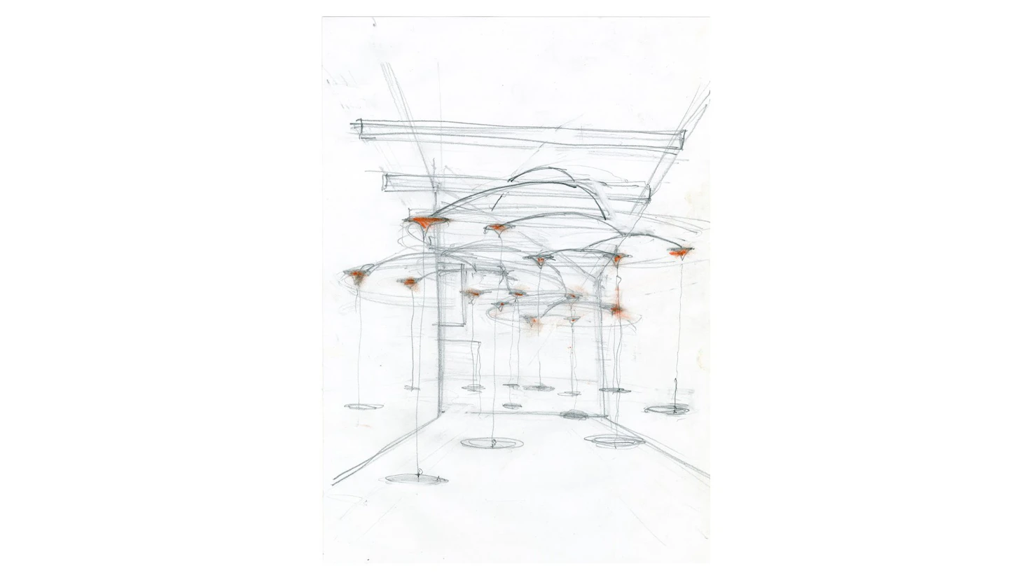 今回の展示では、モビールの形態で天井から吊り下げられた複数のロート状のインスタレーションを中心に展示。各要素が回転しながら影響し合い、空間全体を緩やかに浮遊する構成となっている。ロート状の先は円盤とつながり、その円盤も遅れて円を描く動きを見せる。合わせて、動きを伴う彫刻や色彩豊かなドローイング、視覚と認識のずれを捉えた映像作品なども紹介する。