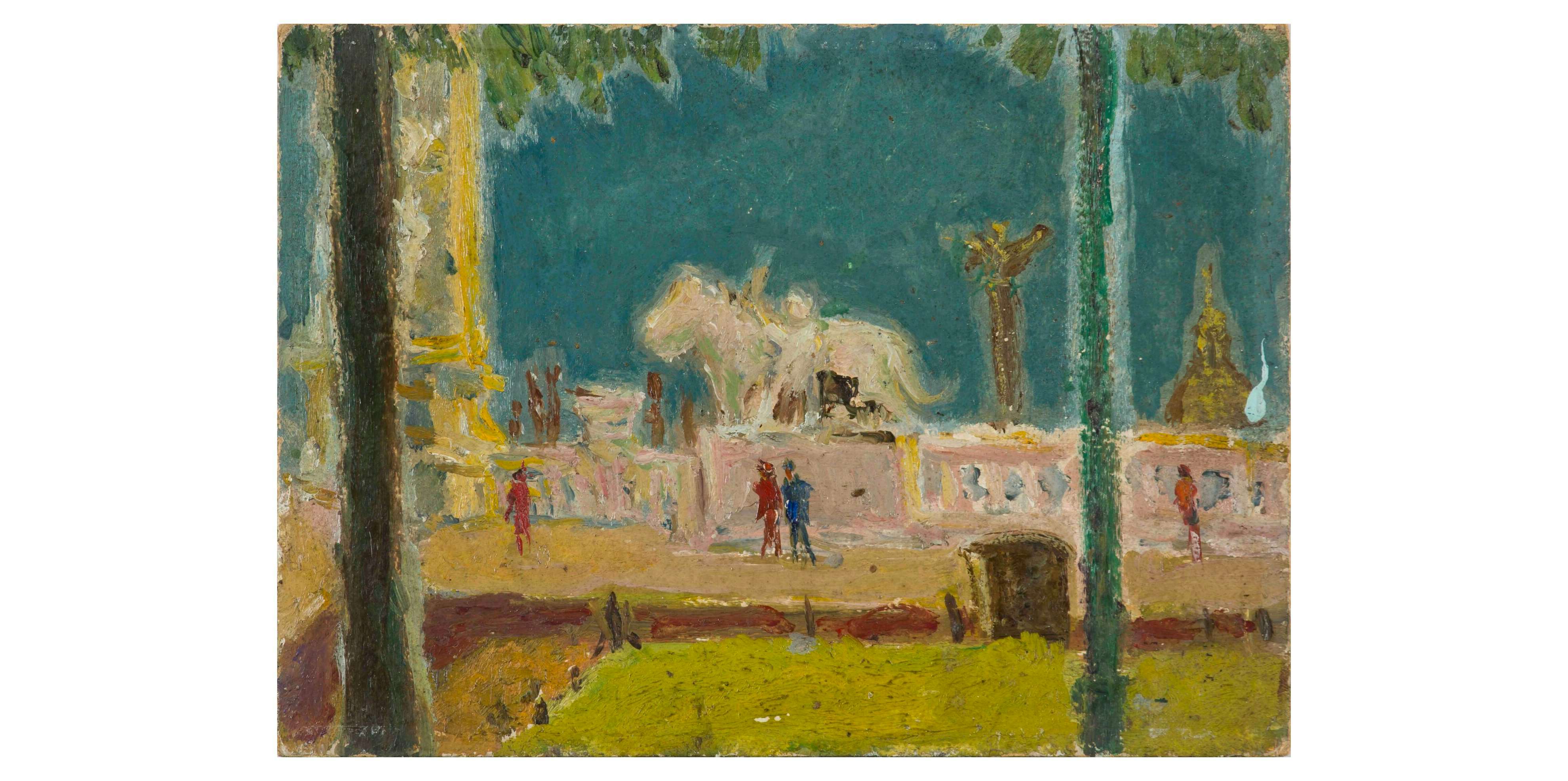 「抽象世界へのいざない」では、第二次海老原研究所の所長を務めた境野一之の抽象画を紹介。また「ヨーロッパの風景画」では、境野が1964年の欧州旅行での体験をもとに描いた油彩画と旅行中に撮ったスライド写真を展示している。