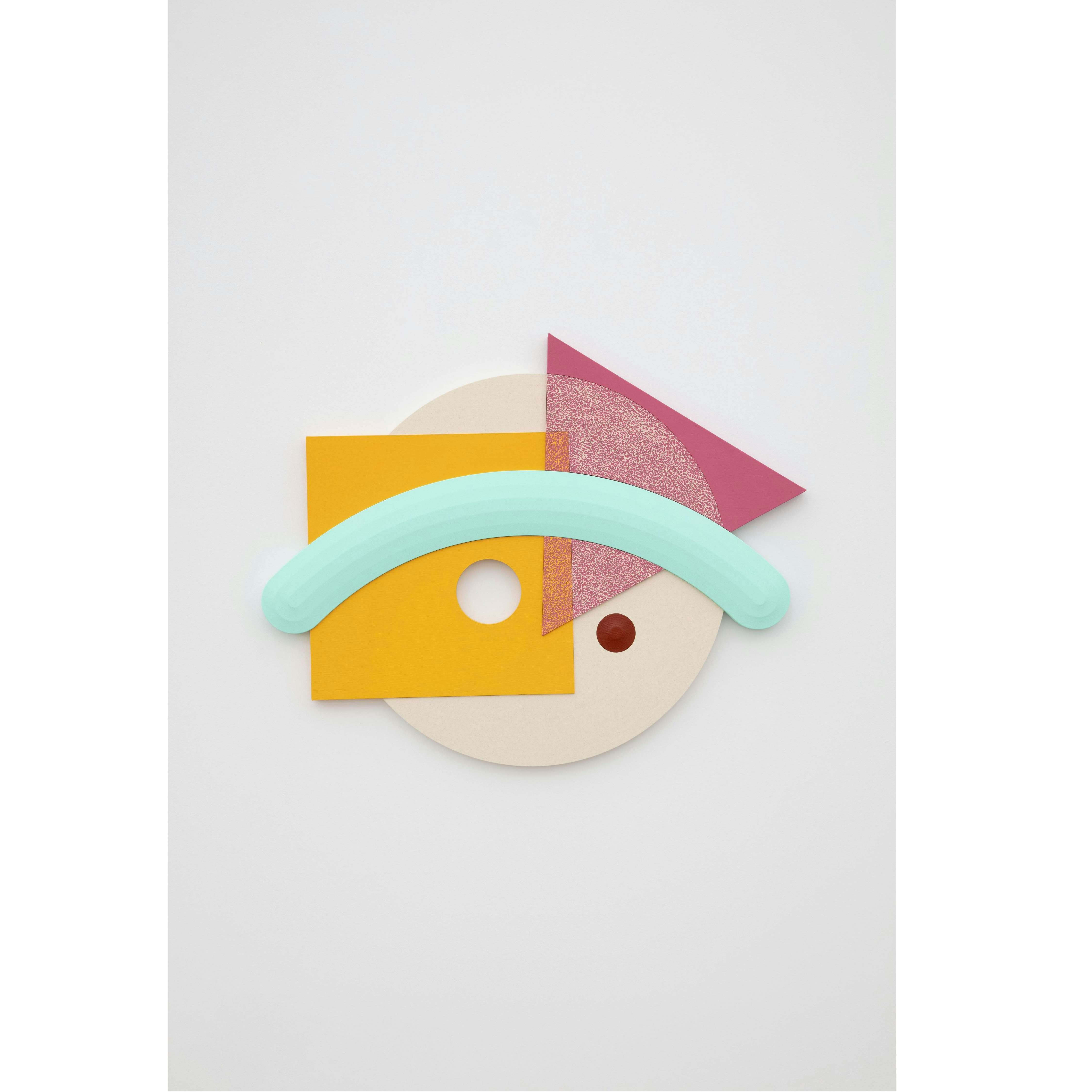 合板が入り組んだシェイプト・キャンバスを支持体とするスパーリングの作品は、通常の絵画とは異なり、絵画と彫刻、イメージとオブジェクトの境界線をぼかすような立体的な絵画だ。一連の作品群は、60~70年代のミニマル・アートや家具デザインから受けた影響にもとづいて制作される。