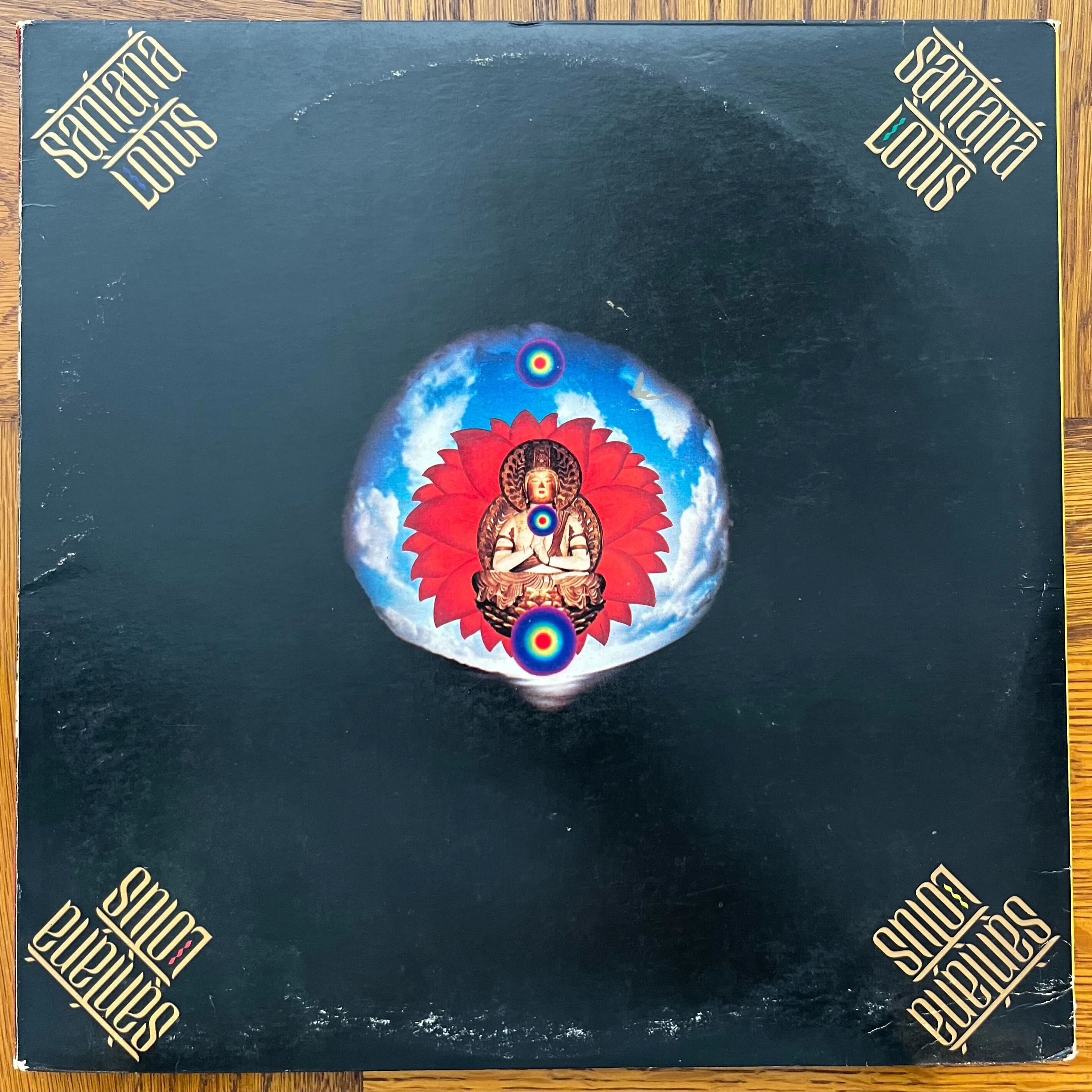 横尾は、アメリカのラテン・ロック・バンド「サンタナ」が1973年に初来日した際に行ったライブをレコード化した『ロータスの伝説』を22面体のレコードジャケットとしてデザイン。音楽とアートの融合という視点において、日本の音楽史に大きな足跡を残した。