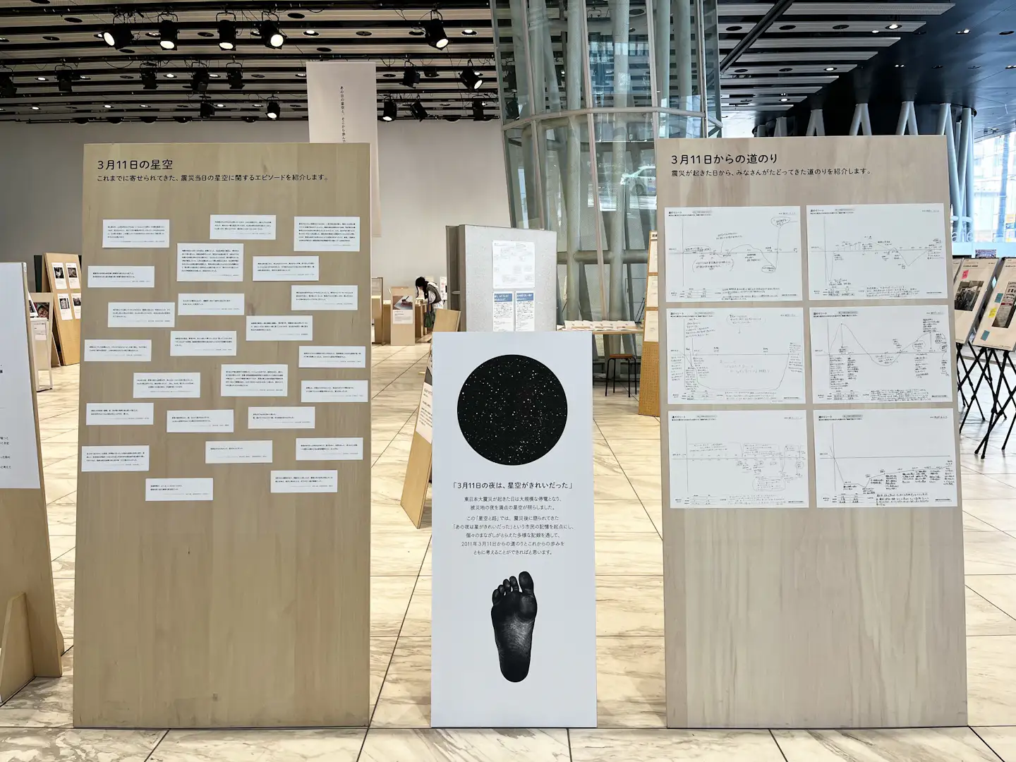 企画シリーズ「星空と路」は、センターの開設以来、毎年3月に実施されており、今年で15回目を迎えた。タイトルにある「星空」は、震災直後の停電の夜、見上げた空に広がっていた美しい星々に由来していると、北野は教えてくれた。会場では、参加者による記録の展示やイベントのほか、これまでに蓄積された記録をこれからの未来にどう活かしていくか、その試みについても紹介されている。