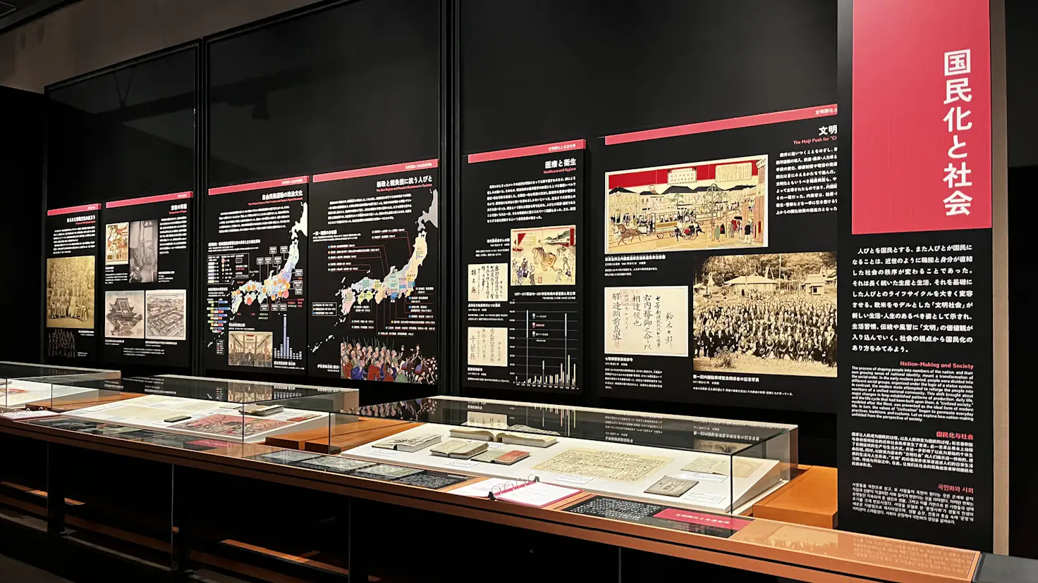 同館常設の総合展示は第1~6室まであり、日本の歴史や文化を時代やテーマごとに分類。民衆の生活史における諸問題を切り口として展示を行っているのが特徴だ。今回の第5室のリニューアルでは、「生活史」「環境史」「国際交流」を基調としつつ、多様性、ジェンダー、移動といった現代的な視点を導入。世界のなかの近代日本社会を、「〈国民〉の誕生」「近代化する人びとのくらしと仕事」「〈帝国〉日本の社会と人びと」という3つの主要テーマで構成し、社会構造の変容と人々の営みをより立体的に浮かび上がらせている。