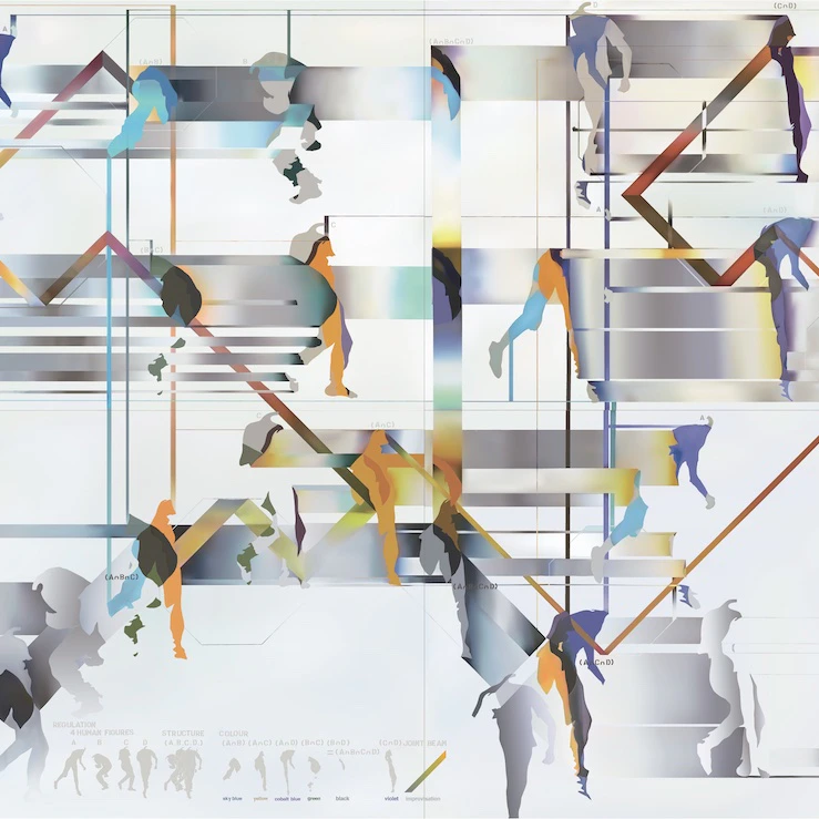 また、グラデーションによって各要素の関係性を三次元的に構成していた絵画のみならず、レーザー光線の一筆描きによって実在の三次元空間に関係を構成した《Laser: Beam: Joint》(1968)が、約30年の時を経て再展示された。もやがかった空間の中に、宇佐美作品の代表的な様式である人体の形にくり抜かれた透明アクリル板(ネガ)と人体の形をした透明アクリル板(ポジ)のあいだを、レーザー光線が反射を繰り返しながら走り抜けている。作品を構成する物質としての素材(透明アクリル板)は当時と同じものであるが、展示空間やレーザー光線の仕様、鑑賞者の関与が1968年の展示とは異なり、本展のために新たに設えたこともあって2021年版の再制作として公開されている。ここでは、演奏や演劇のように作品が部分的に更新され再演される、鑑賞体験の復活が試みられている。