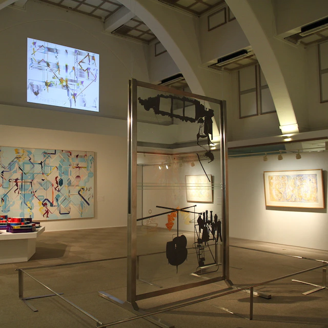 そして、宇佐美作品のほかに本展の射程に広がりを与えている存在が、駒場博物館のシンボルとして常設展示されている《花嫁は彼女の独身者たちによって裸にされて、さえも》(通称《大ガラス》東京ヴァージョン、1980)だ。すでに語られている通り、フィラデルフィア美術館が所蔵するオリジナルヴァージョンのガラスが破損する前の姿を再現すべく、展示に供するためというよりは、その制作素材や技術の再現に主眼を置いた研究用の再現制作である(*4)。これは、完成形に至る道程を臨写するように制作過程の復活を表したものだろう。